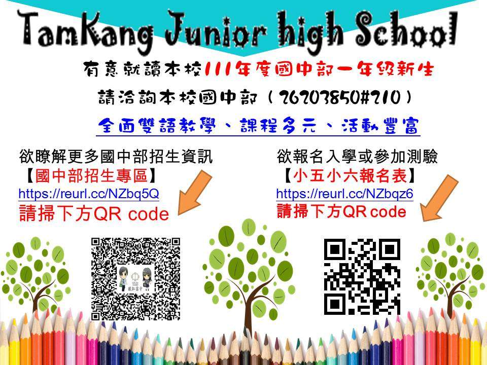轉知 新北市私立淡江高級中學 招生相關訊息,