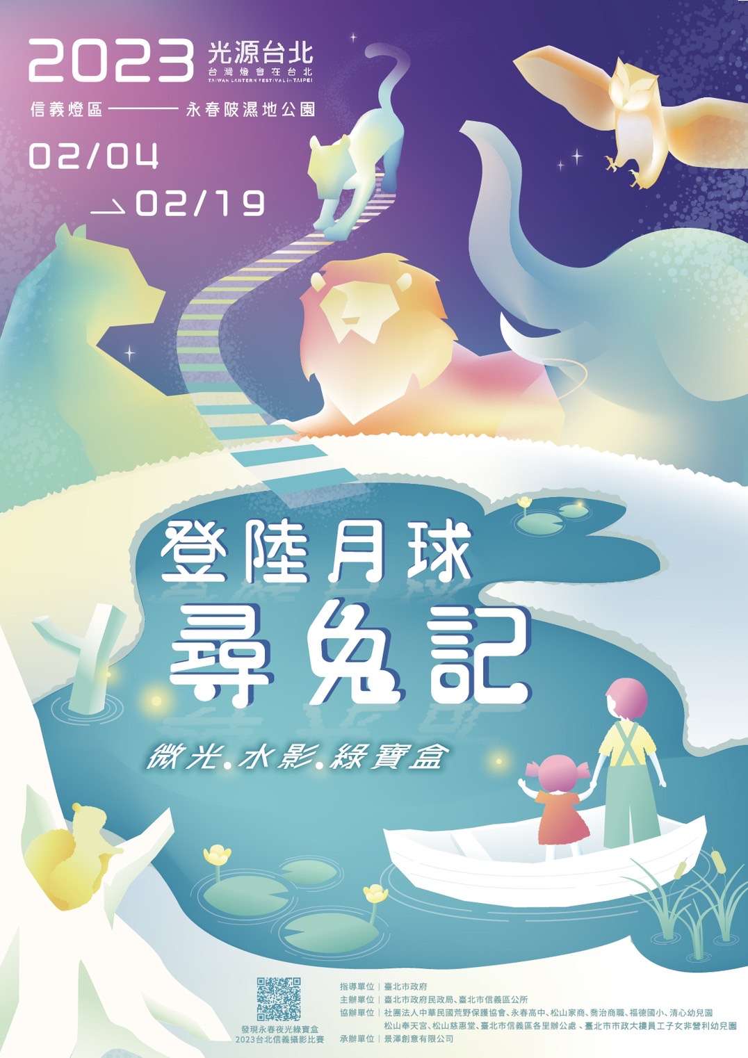 一、本區「2023信義區燈節-登陸月球尋兔記之微光.水影.綠寶盒」系列活動,將於112年2月4日至2月19日辦理。