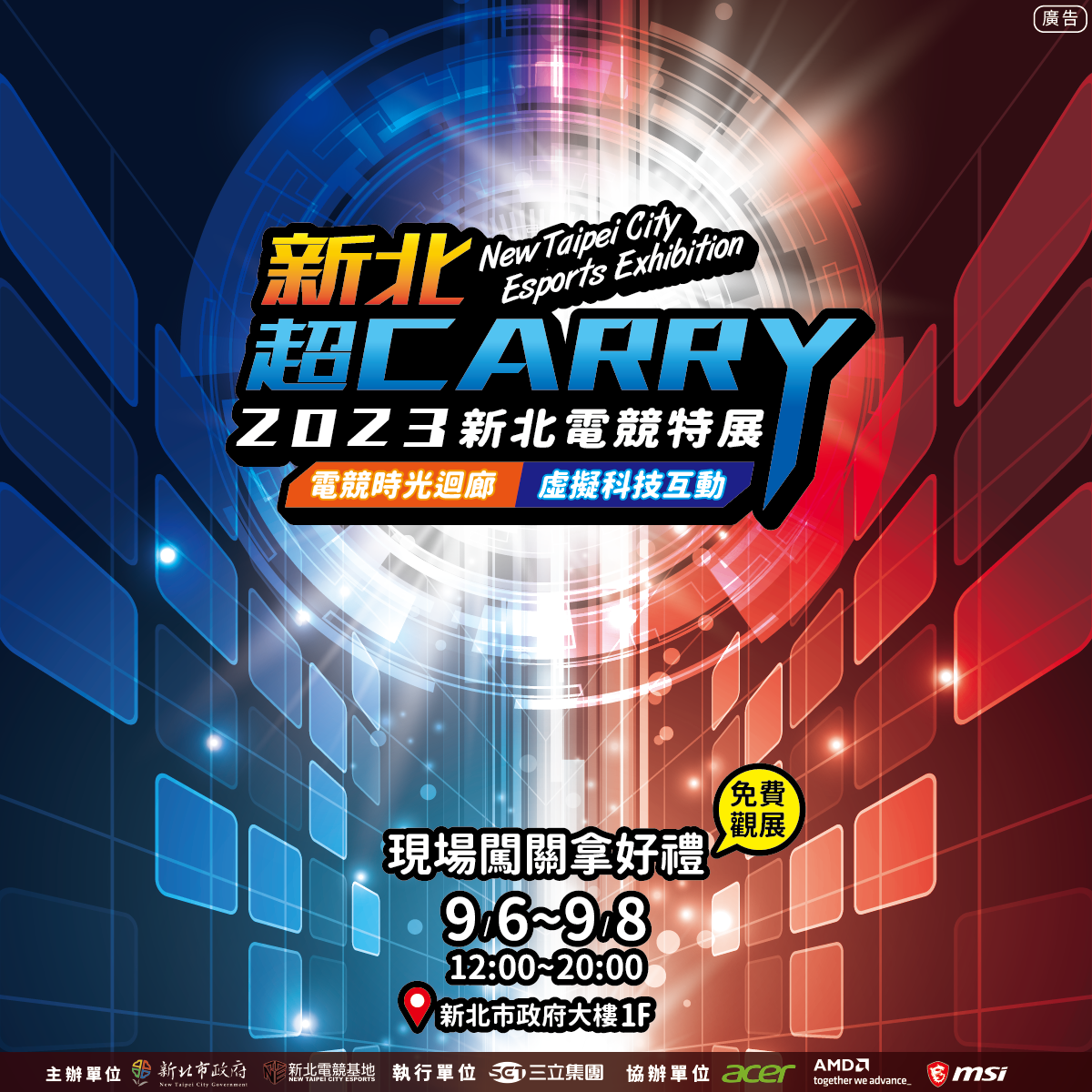 一、為推廣新北電競產業,本府首度舉辦「新北電競特展」, 現場三大展區以電競主舞台、電競產業發展及電競遊戲體 驗,帶領市民一同沉浸體驗電競魅力。